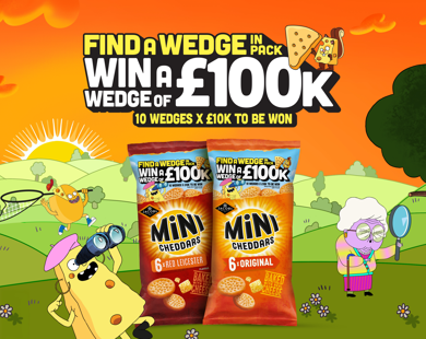 Running from mid-February until May, shoppers who find a triangular Mini Cheddar in their pack can win one of 10 prizes of £10k each.
