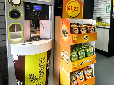Shoppers grabbing a hot drink will also consider a snack too. Make their decision to link the two purchases quick-and-easy.